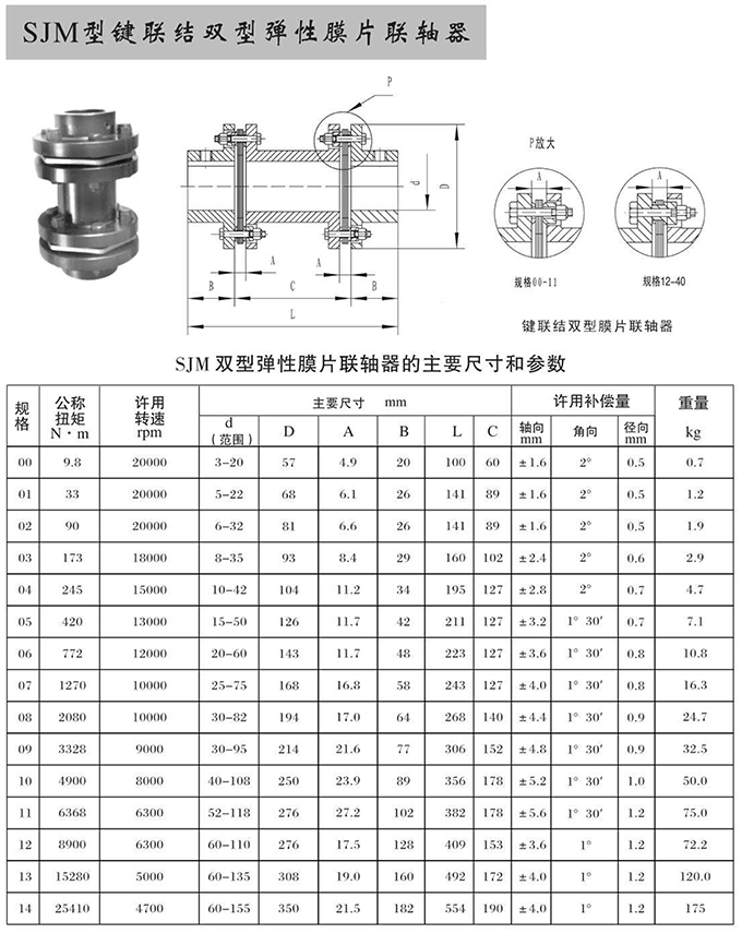瑞安市寶德隆機械配件有限公司提供SJM型鍵聯結雙型彈性膜片聯軸器具有拆裝方便,快速安裝等特點,廣泛用于連接/固定輪轂孔和零件的軸,例如齒輪,錐齒輪,鏈輪,葉輪,凸輪,皮帶輪和飛輪等軸的聯結固定,咨詢電話:18906872378