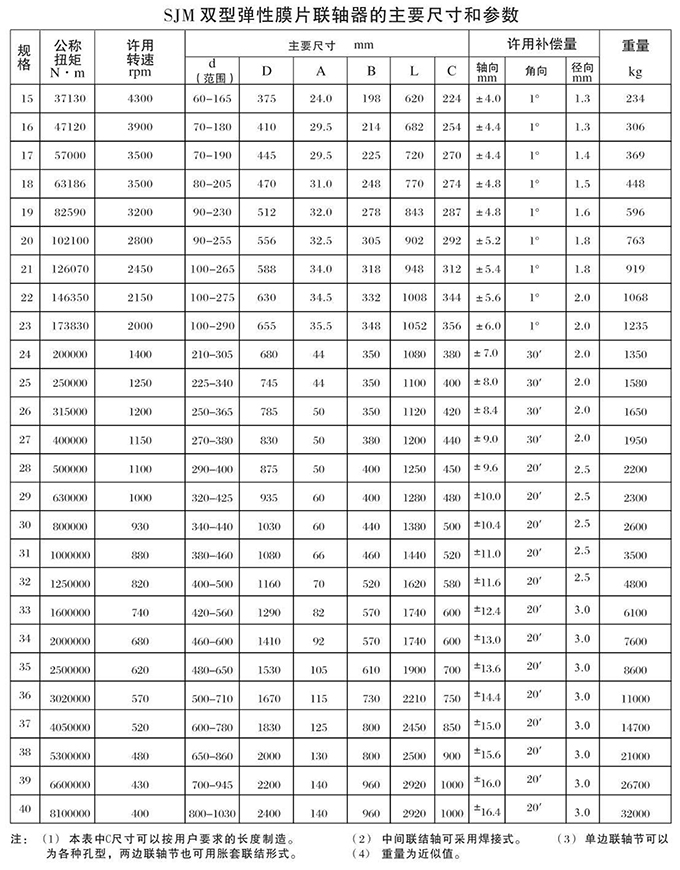 SJM型鍵聯結雙型彈性膜片聯軸器
