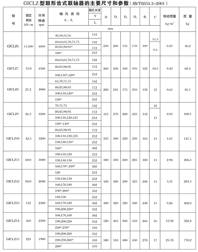 瑞安市寶德隆機械配件有限公司提供GICLZ型鼓形齒式聯軸器具有拆裝方便,快速安裝等特點,廣泛用于連接/固定輪轂孔和零件的軸,例如齒輪,錐齒輪,鏈輪,葉輪,凸輪,皮帶輪和飛輪等軸的聯結固定,咨詢電話:18906872378